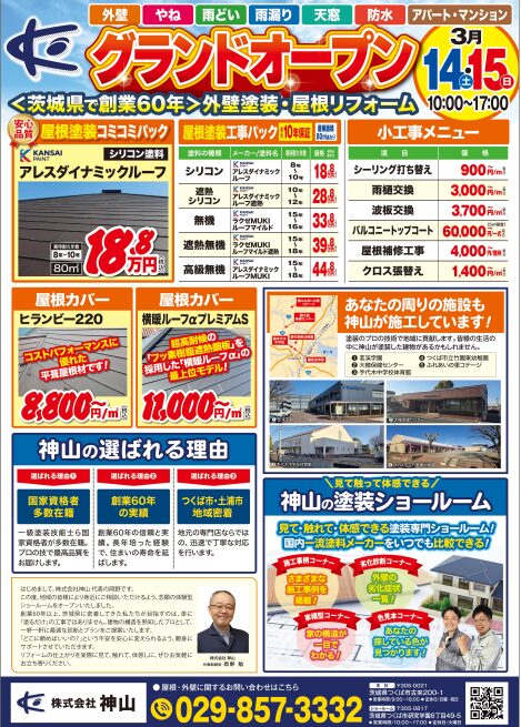 つくば市、土浦市で外壁塗装・屋根塗装を検討されている方は、ぜひ一度 株式会社神山ショールームへお気軽にお越しください。